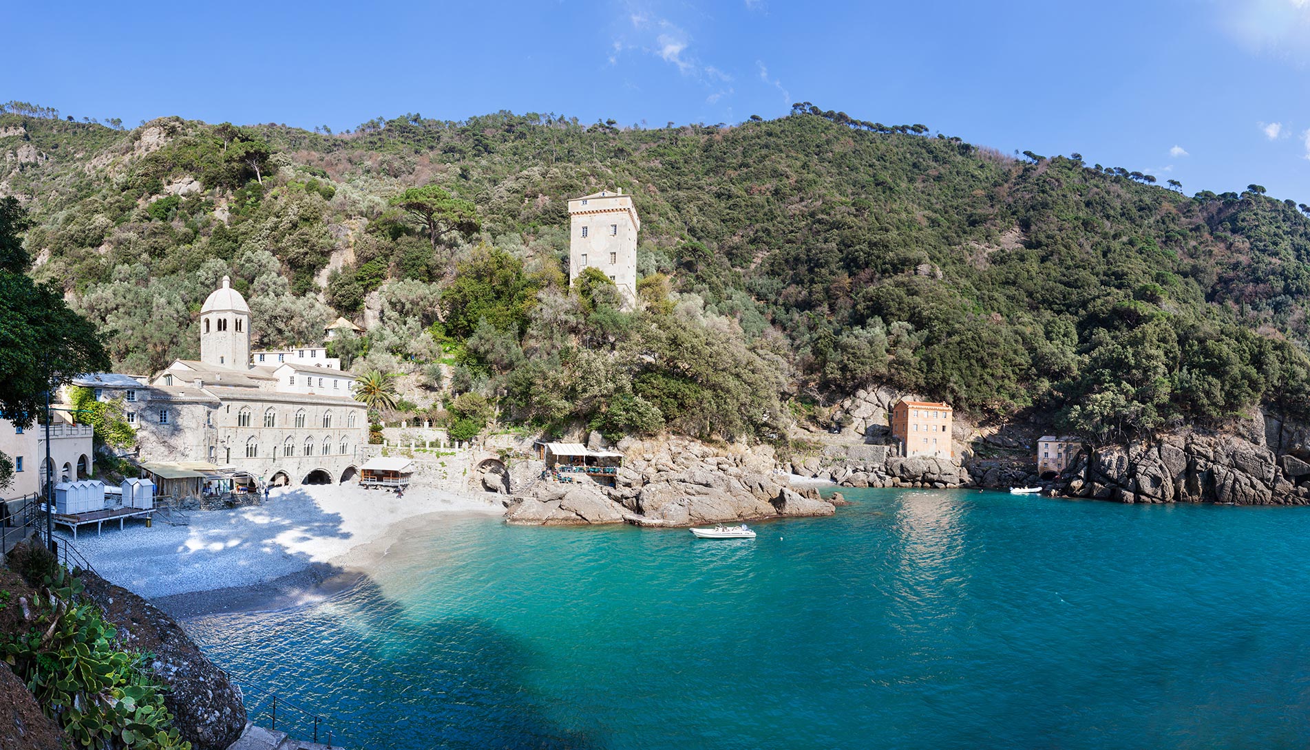 Gioiello della Riviera di Levante è San Fruttuoso di Camogli, una piccola insenatura del promontorio di Portofino, completamente immerso tra mare e terra, raggiungibile a piedi o via mare, attraverso i sentieri panoramici che si sviluppano sul monte, oppure via mare, partendo da Camogli.